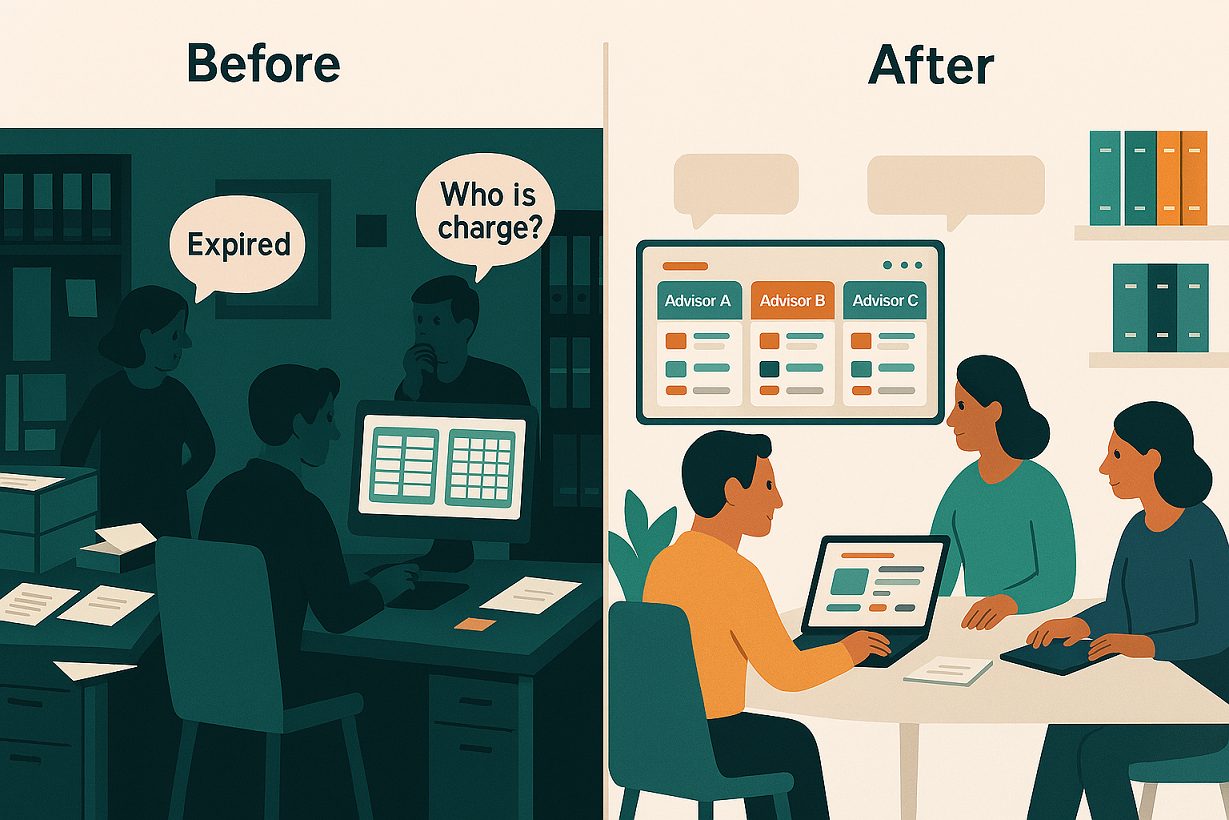 弁護士事務所、会計事務所、税理士事務所といった士業事務所の経営者や実務担当者の皆様は、このような課題をお持ちではないでしょうか。専門知識という無形の価値を提供する士業にとって、サービスの品質と信頼は事業の生命線です。しかし、事業が拡大し、顧問先や案件の数が増えるにつれて、従来のExcelやメール、紙ベースでの管理手法では限界を迎え、業務の属人化が深刻な経営リスクとなり得ます。