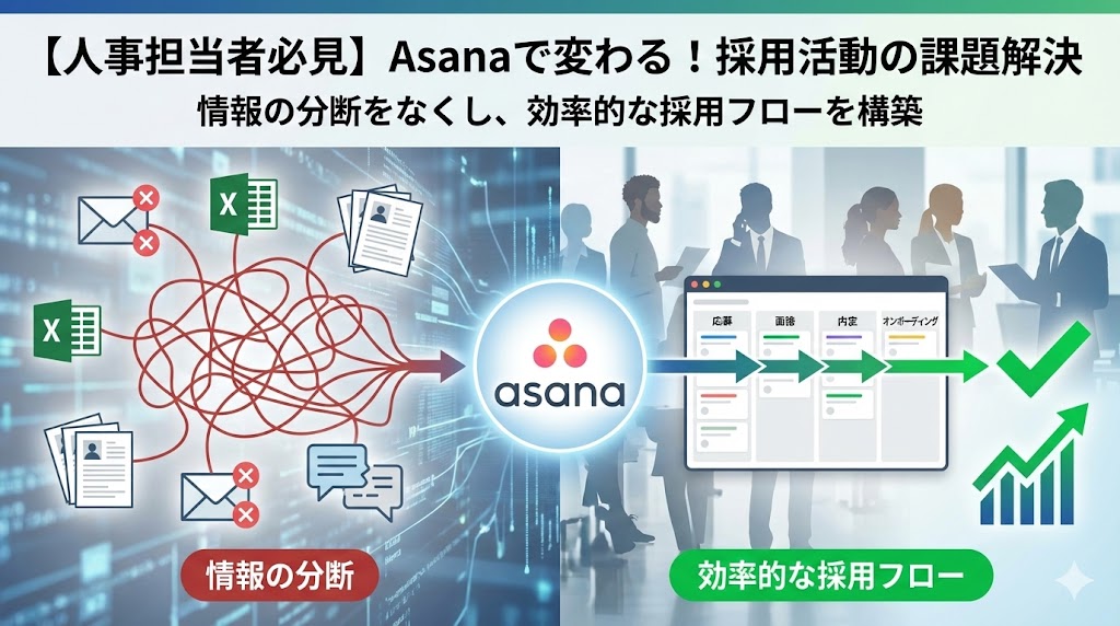 本記事では、この採用活動という複雑なプロジェクトを成功に導くための「人事DX」ソリューションとして、ワークマネジメントプラットフォーム「Asana」をご紹介します。Asanaを活用し、応募者の管理から、選考プロセスの進捗可視化、そして内定後のオンボーディングまで、採用活動の全フェーズを一元管理し、効率化するための具体的な手法を解説します。