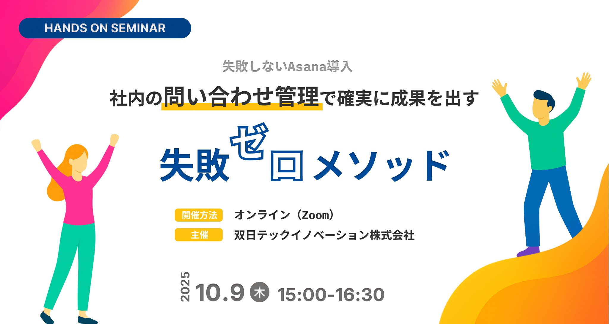| セミナータイトル | 失敗しないAsana導入!社内の問い合わせ管理で確実に成果を出す”失敗ゼロ”メソッド |