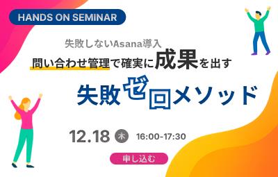 | 16:00-17:20 | 【ハンズオン】Asanaで“漏れない”問い合わせ管理の仕組みを作ろう! 参加者ご自身にAsanaを操作いただき、問い合わせ管理の仕組みを実際に構築します。 |