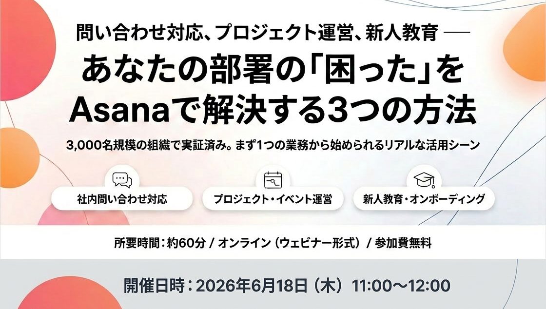 問い合わせ対応、プロジェクト運営、新人教育 ── あなたの部署の「困った」をAsanaで解決する3つの方法