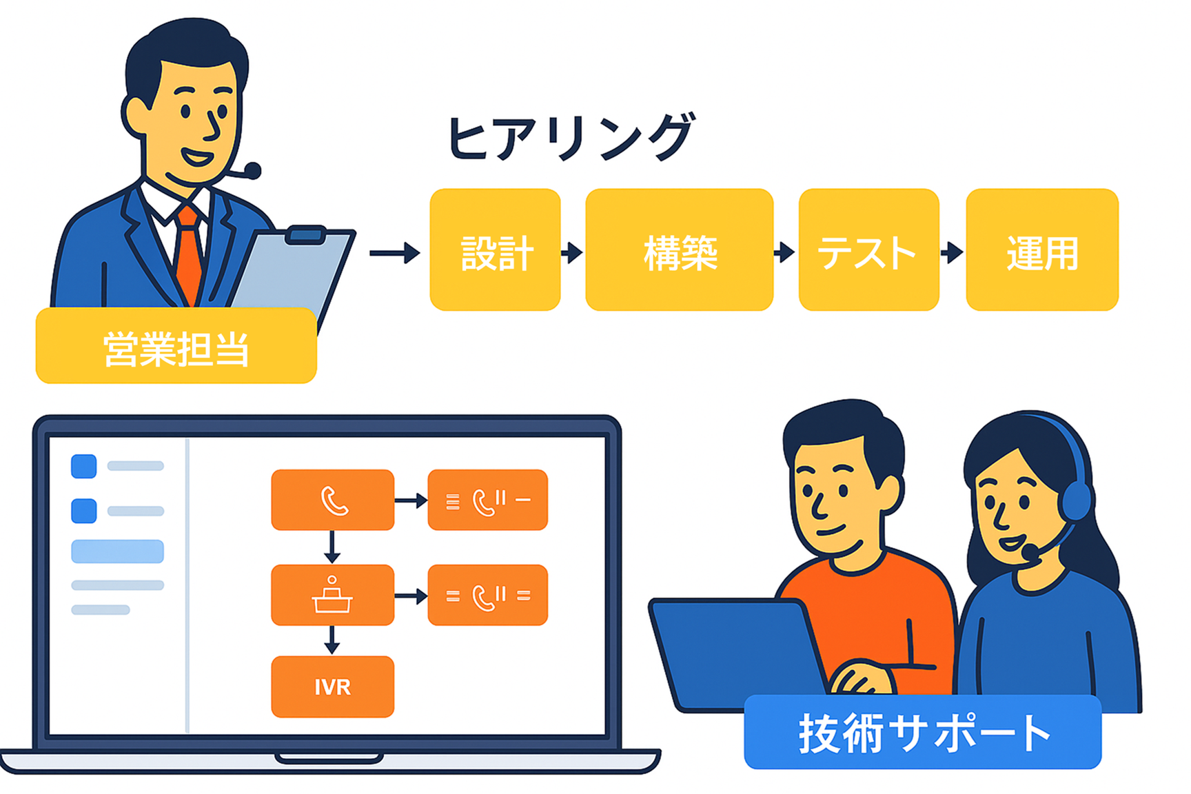 今回ご紹介したのはほんの一例ですが、IVRの良さは「どんな業種・業務にも柔軟にカスタマイズできる」点にあります。Zoom Phoneでは、テンプレートからシナリオを作成することも、ゼロから完全オリジナルのフローを組むことも可能です。 「何から手をつければいいかわからない」という場合でも、専門スタッフが最適なシナリオをご提案し、構築・運用まで伴走します。次のセクションでは、そのサポート体制や導入の流れをご紹介します。